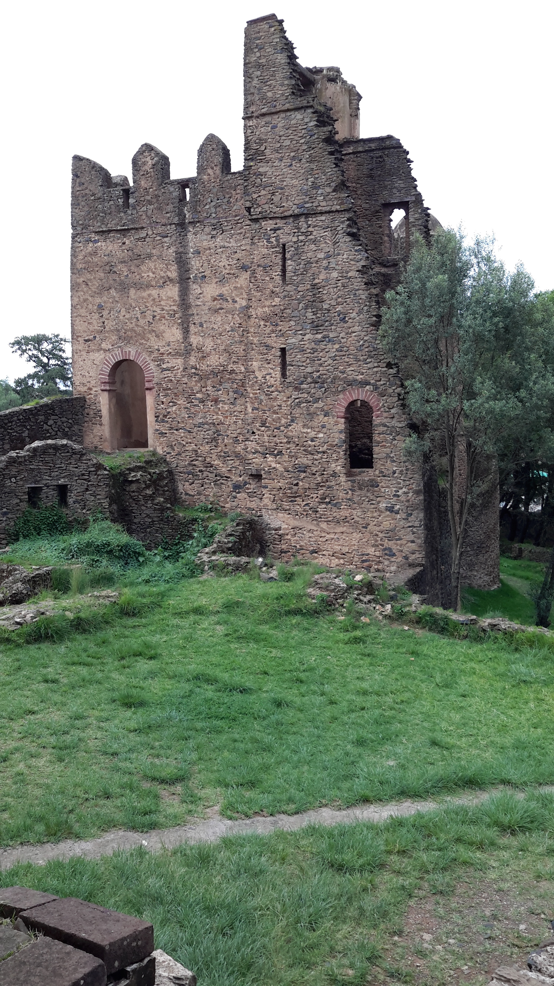 After visiting Lalibella, we had a short flight to Gonder which is consdidered the Camelot of Africa because of the Medieval castle ruins of the Gonderian kings. The castle ruins are encircled by a wall in which there are 12 entrances. We used the royal entrance and the warrior gate as our exit. UNESCO and the Federal and Local Government are all working in collaboration in preserving the ruins. The ruins sit on over 6 acres of land and includes stables, a feasting room, musical performance hall, a spa for the king and his concubines and a cage for lions. The lion was the symbol of strength and courage of the kings. One of the wives of a ruling king, succeeded him upon death and served as a model of female leadership by promoting women vocational programs.
